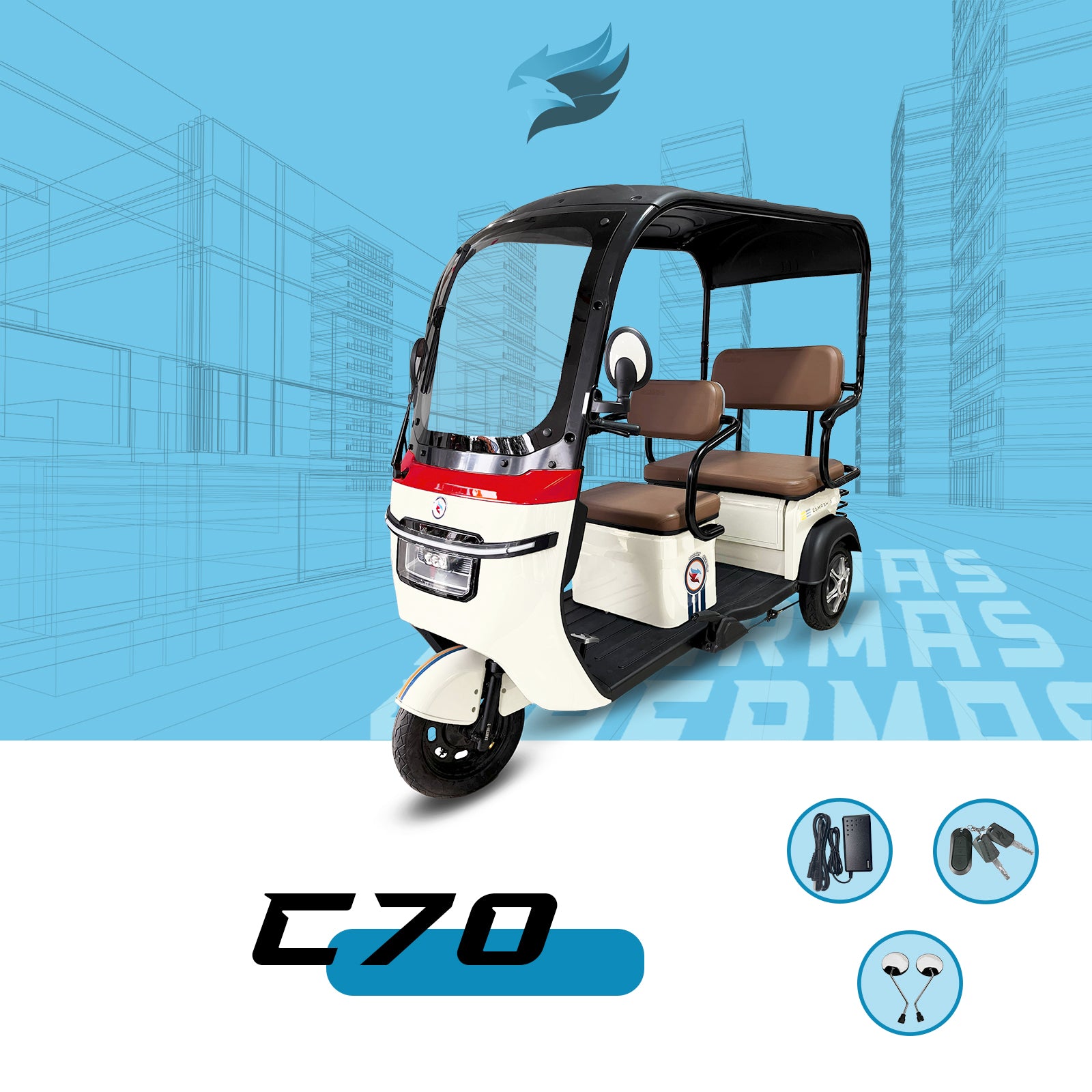 Triciclo Eléctrico con toldo E-Hermas C70